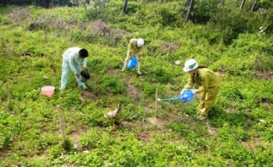 平成24年9月1日 羽咋市滝町の羽咋一の宮海岸にて、地域の方々と一緒にヒラメの…