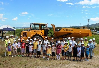 地域の皆様に七尾バイパスへの親しみを感じていただくことを願い、羽咋市立羽咋小学校の皆様を対象に、普段一般の方は立入ることのできない工事現場で「はたらく車(建設機械)」を実際に間近で
